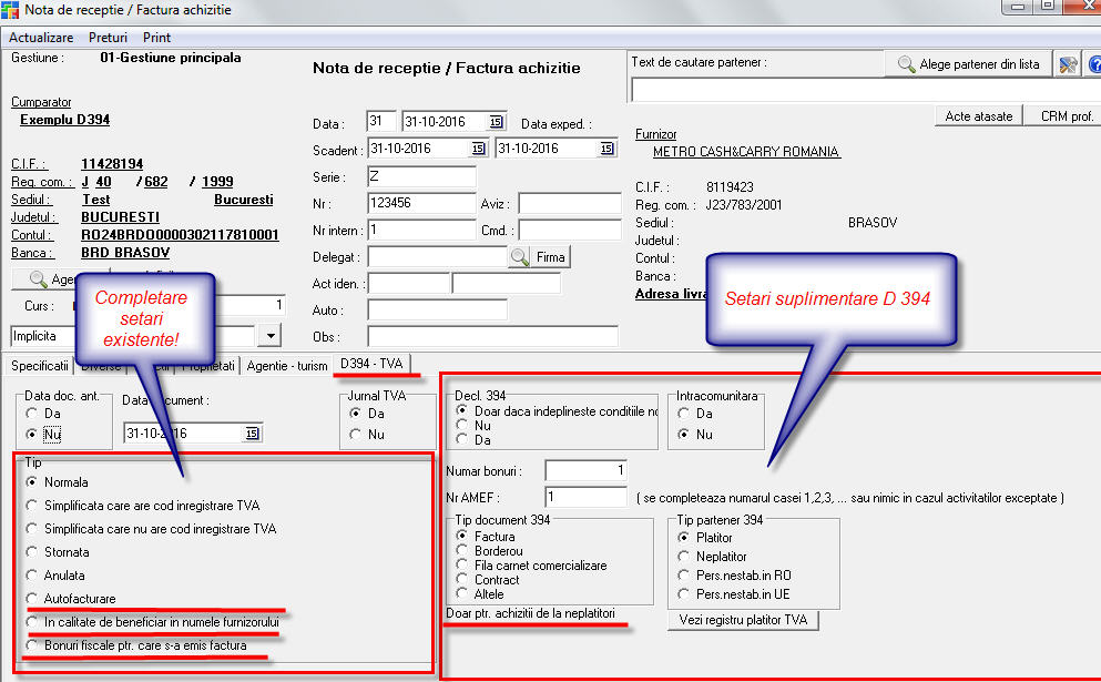 In acest material puteti gasi informatii privind noua structura a Declaratiei 394, precum si setarile ce trebuiesc efectuate in sistemul PlatphormaSQL pentru a putea genera aceasta declaratie.