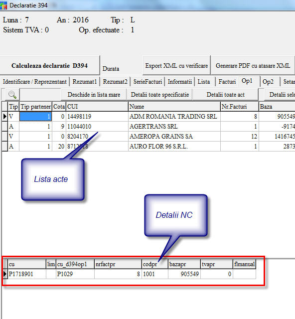 In toate actele, au fost introduse urmatoarele bife specifice:
