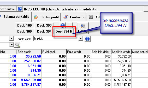 Pentru accesarea declaratiei D394 (iulie - septembrie) se apasa Decl D394N din modulul Balanta