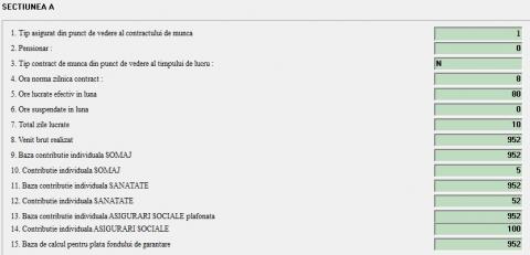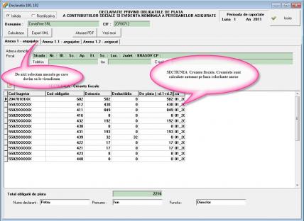 Putem sa vizualizam diversele sectiuni din declaratie selectand "felia " corespunzatoare :