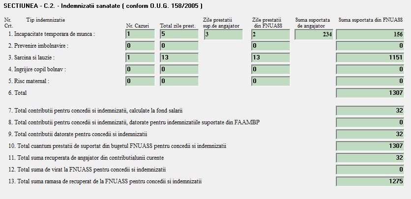C2 - Indemnizatii de sanatate conform OUG 158/2005