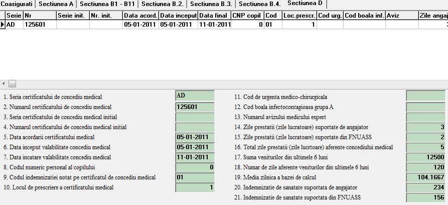 Sectiunea D concedii medicale conform OUG 158/2005