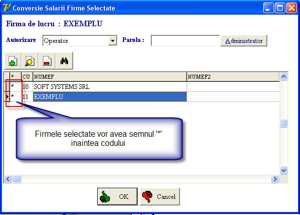 Selectati firmele la care doriti sa faceti conversie cu tasta '+' sau 'F8'