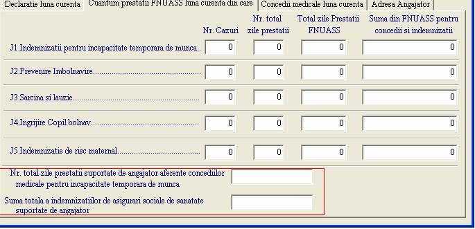 - ZI_PRE_ANG - contine numarul de zile, prestatii,suportate de angajator pentru incapacitatea temporara de munca