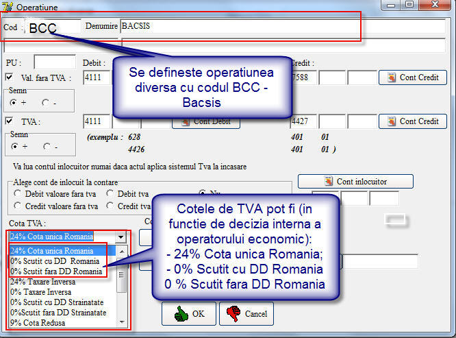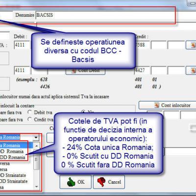 In modulul Borderou Vanzari se defineste (se adauga) o operatiune diversa cu codul BCC.