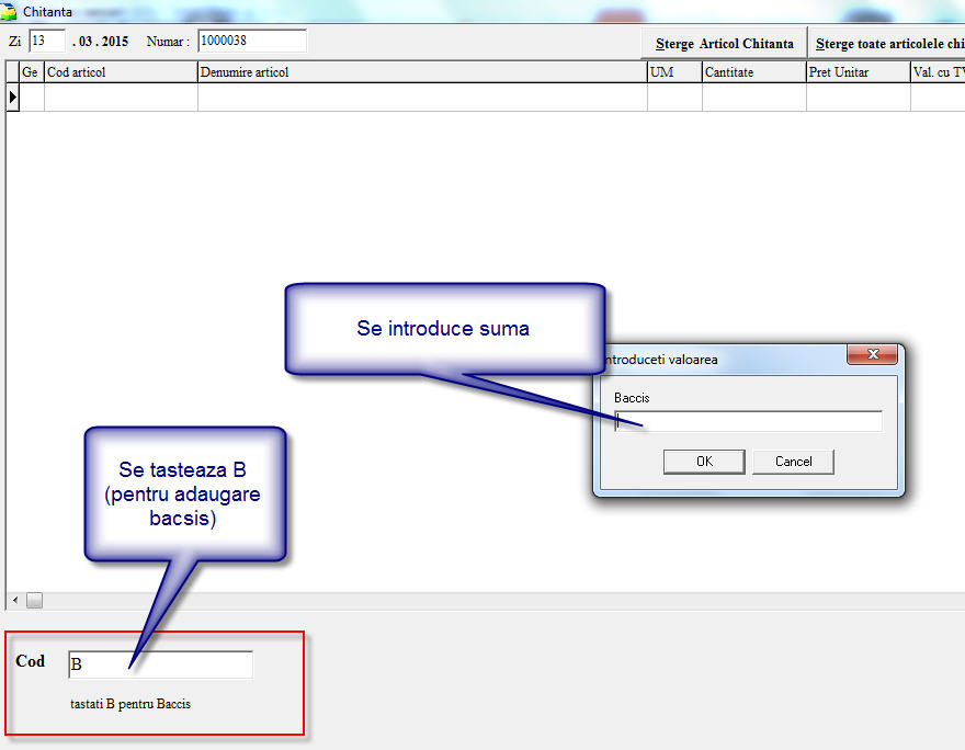 Astfel, se asigura trimiterea catre casa de marcat sau a imprimantei fiscale a unei linii de bacsis.