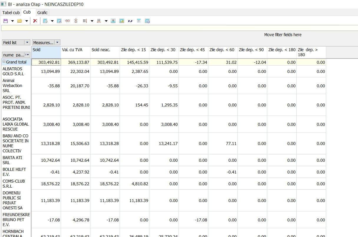Sistemul permite miscarea dinamica si in timp real a coloanelor prin functia (Drag and Drop) pentru a vizualiza informatiile in diverse forme in functie de diverse criterii (agenti, grupe de produse, producatori, vanzari, parteneri, etc)