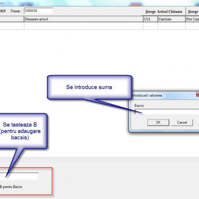 Astfel, se asigura trimiterea catre casa de marcat sau a imprimantei fiscale a unei linii de bacsis.