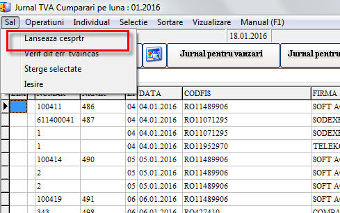 Accesati modulul Jurnale TVA si rulati din meniul SAL -> Lanseaza Cesprtr:
